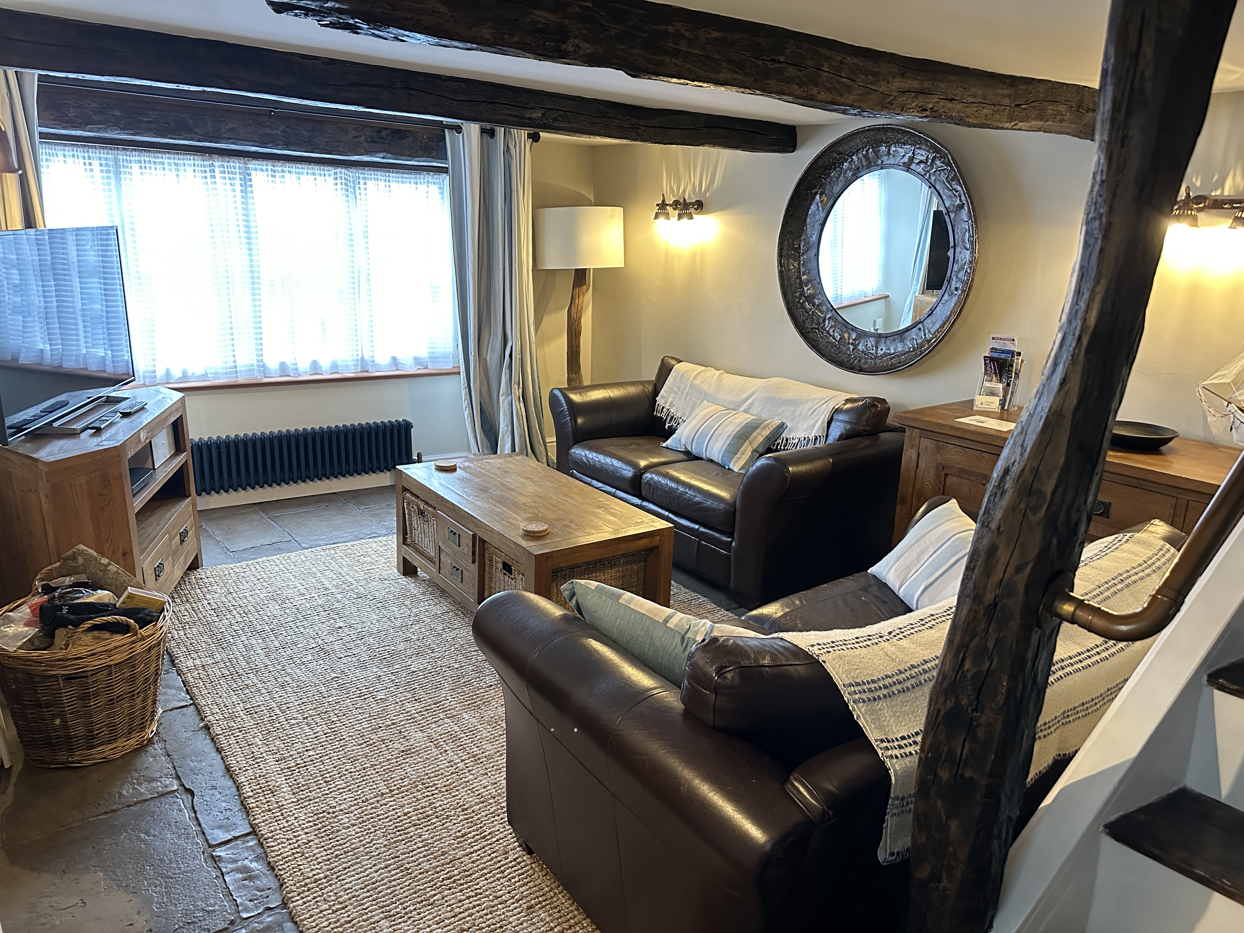 Park up in the designated parking space and travel on foot to the home, before entering through the stable door and into the characterful sitting room, where you can relax on the plush, leather sofas, light the woodburning stove, and catch up with your favourite series on Netflix.